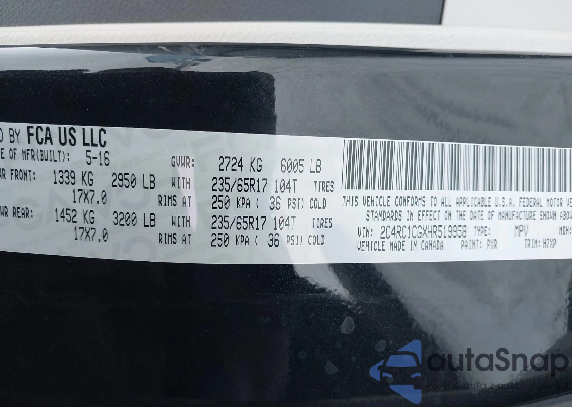 VIN: 2C4RC1CGXHR519958