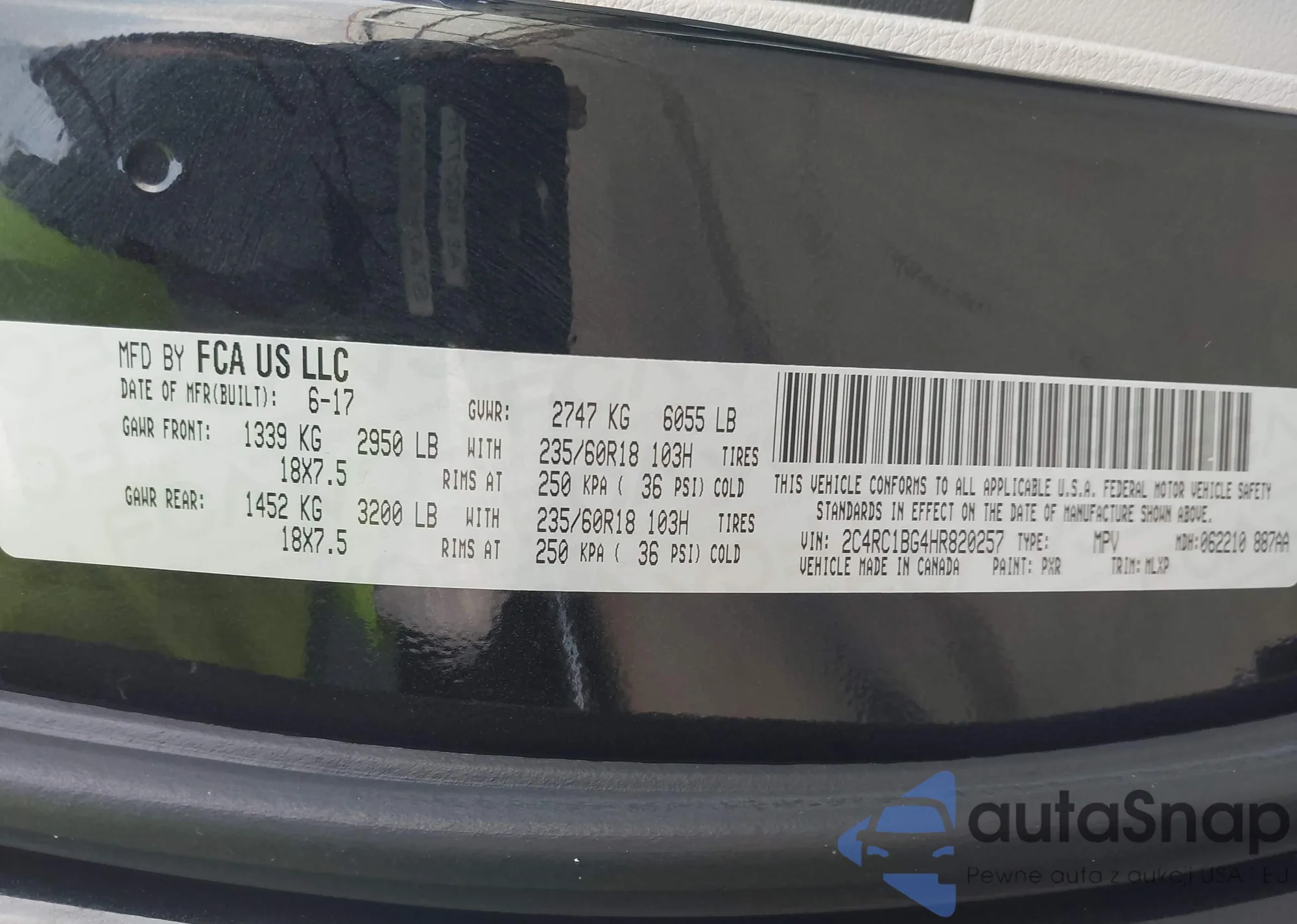 • VIN: 2C4RC1BG4HR820257