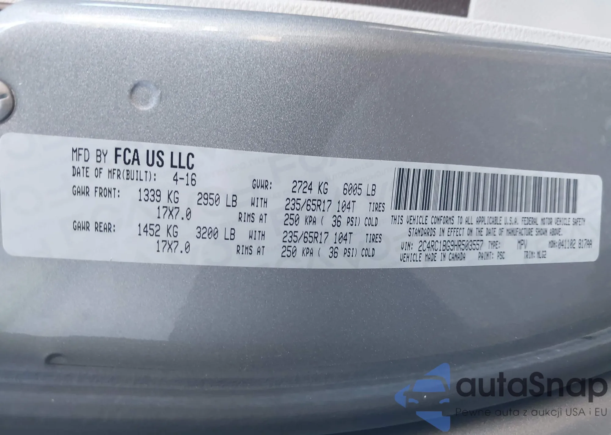 VIN: 2C4RC1BG9HR503557