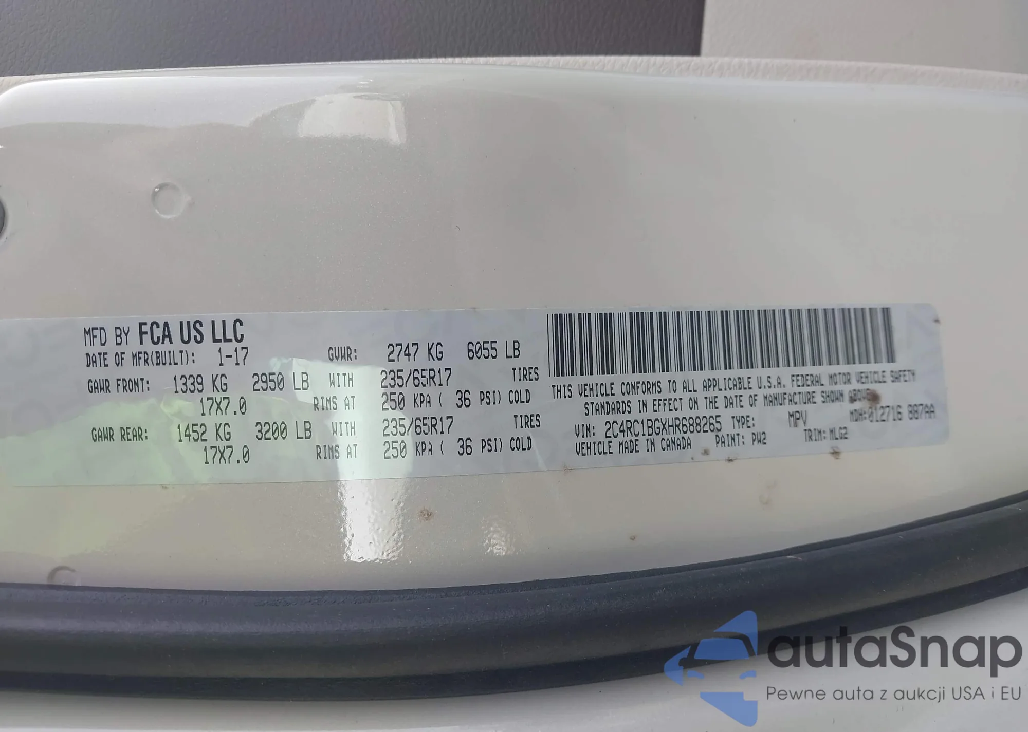 VIN: 2C4RC1BGXHR688265