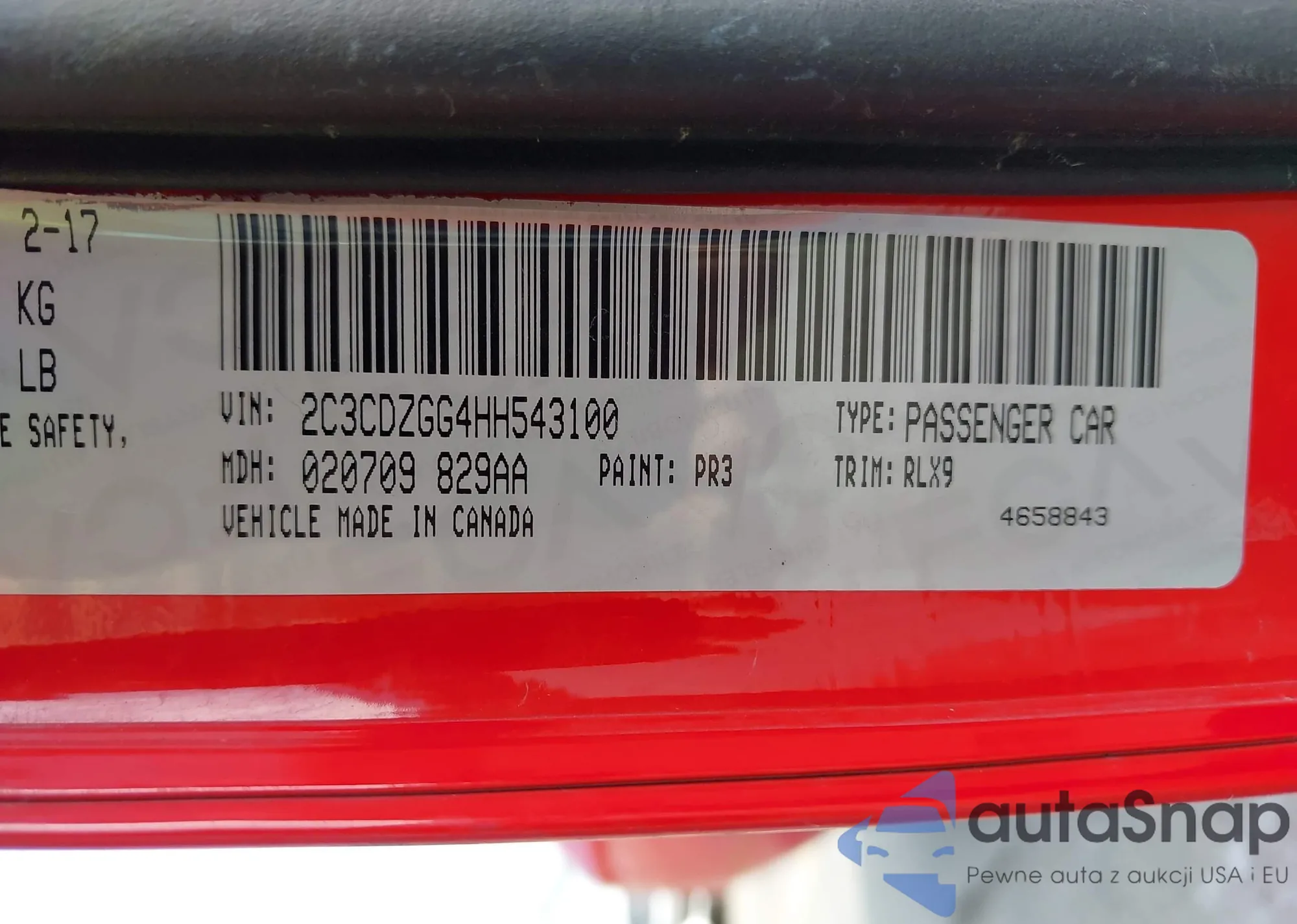 VIN: 2C3CDZGG4HH543100