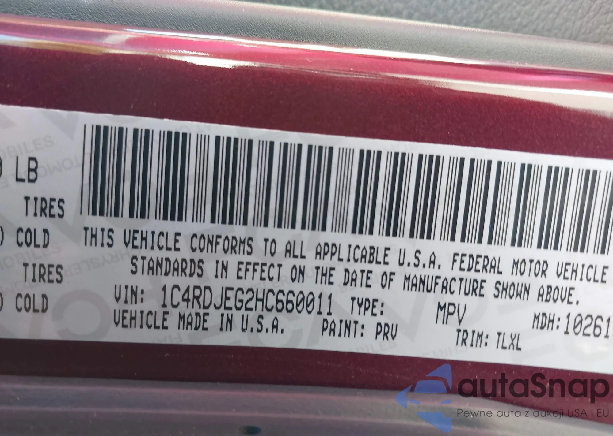 • VIN: 1C4RDJEG2HC660011