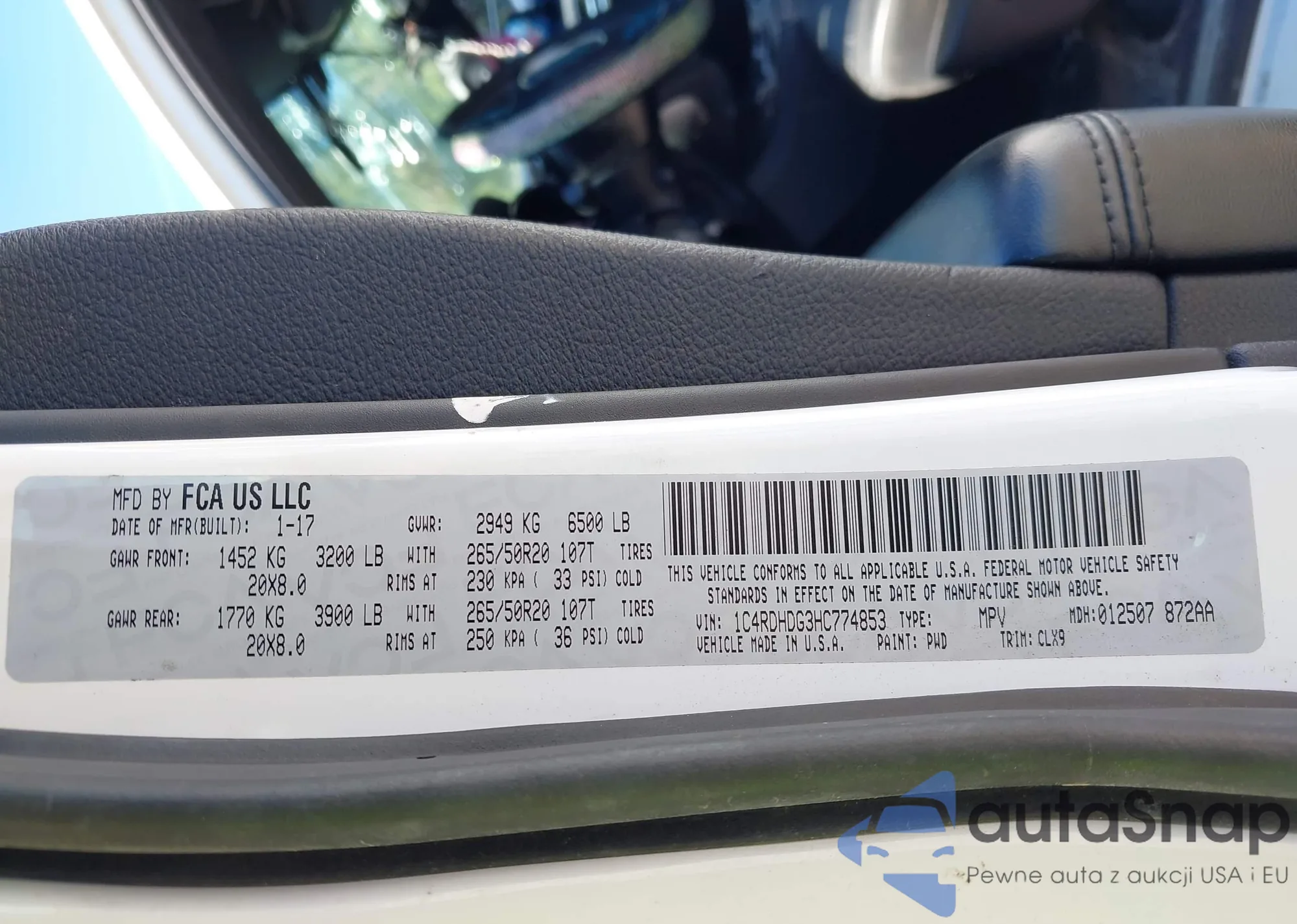 VIN: 1C4RDHDG3HC774853