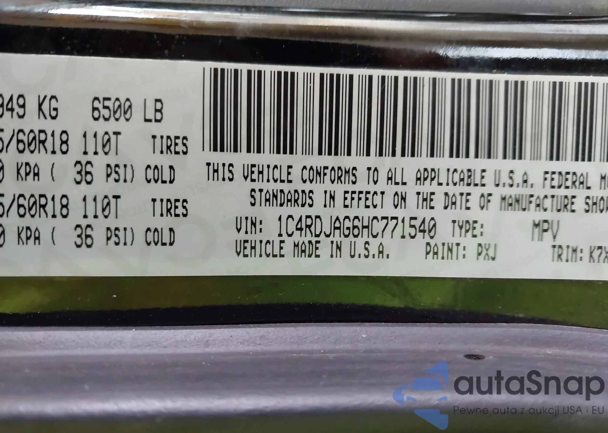 VIN: 1C4RDJAG6HC771540