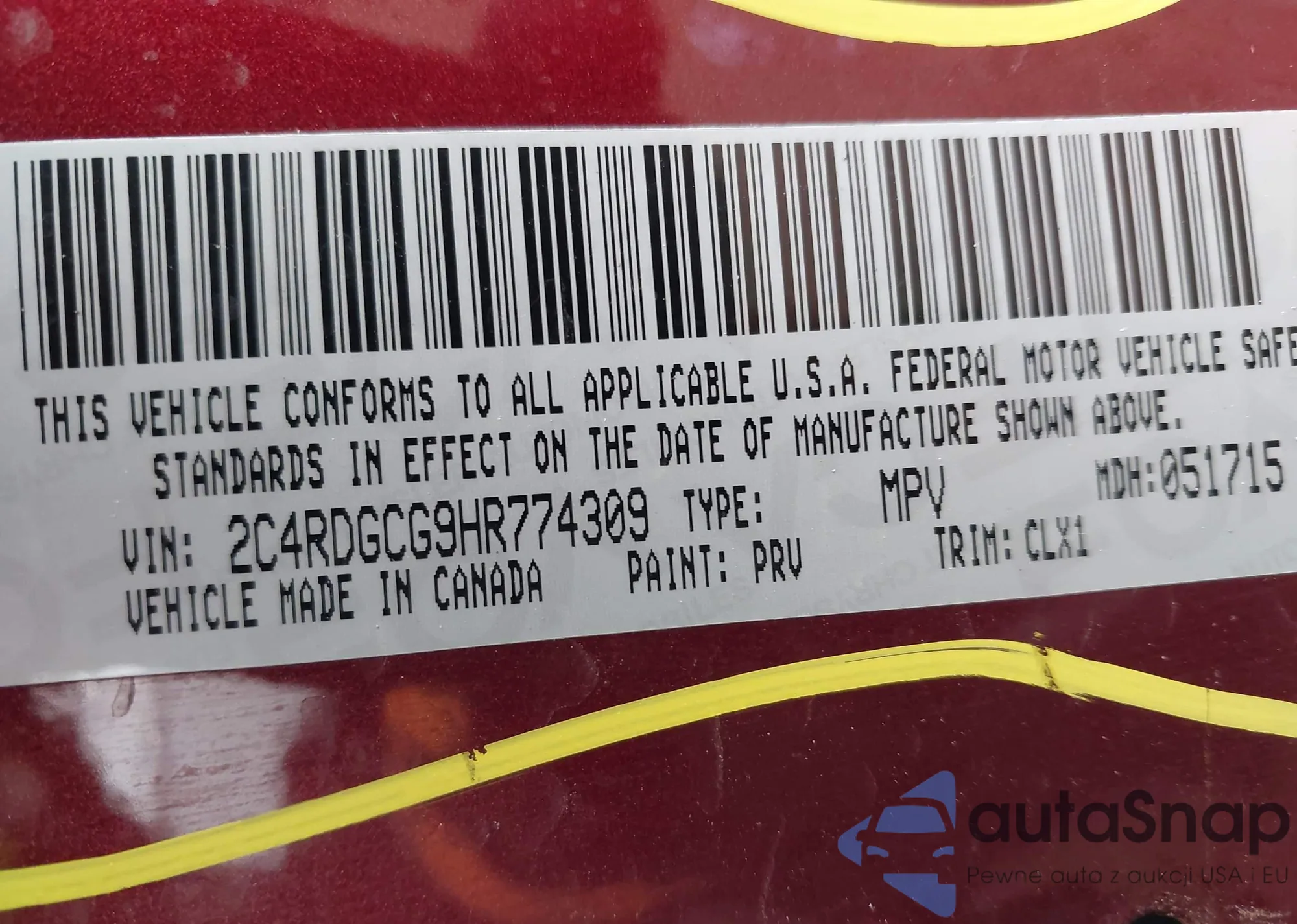 The car Dodge Caravan 2017 (VIN 2C4RDGCG9HR774309) has not been auctioned before. The documents are clean, and the mileage matches or is below the market average. Sold by an insurance company – we recommend purchase. Delivery to the port will take approx. 6–8 weeks.