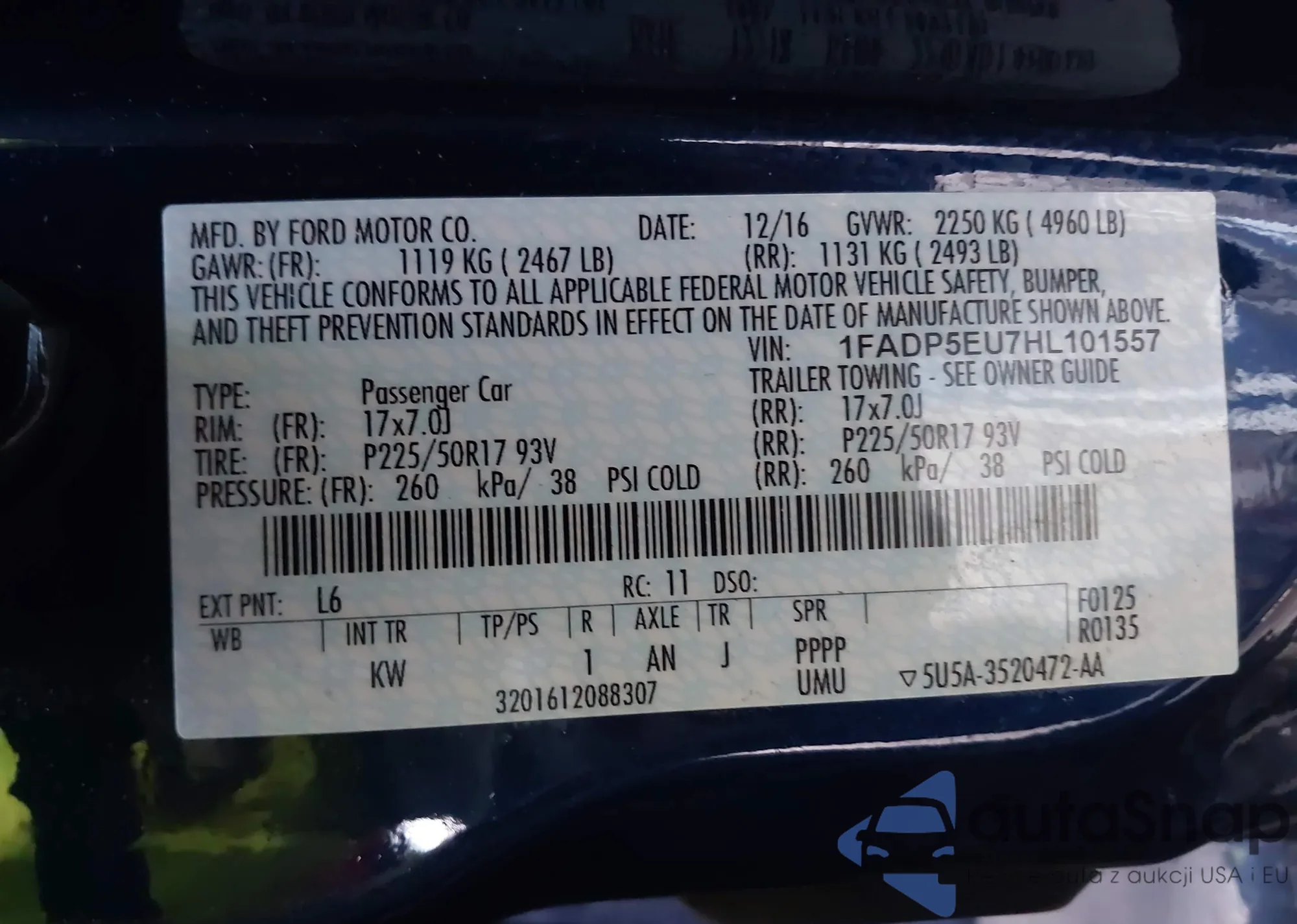 VIN: 1FADP5EU7HL101557