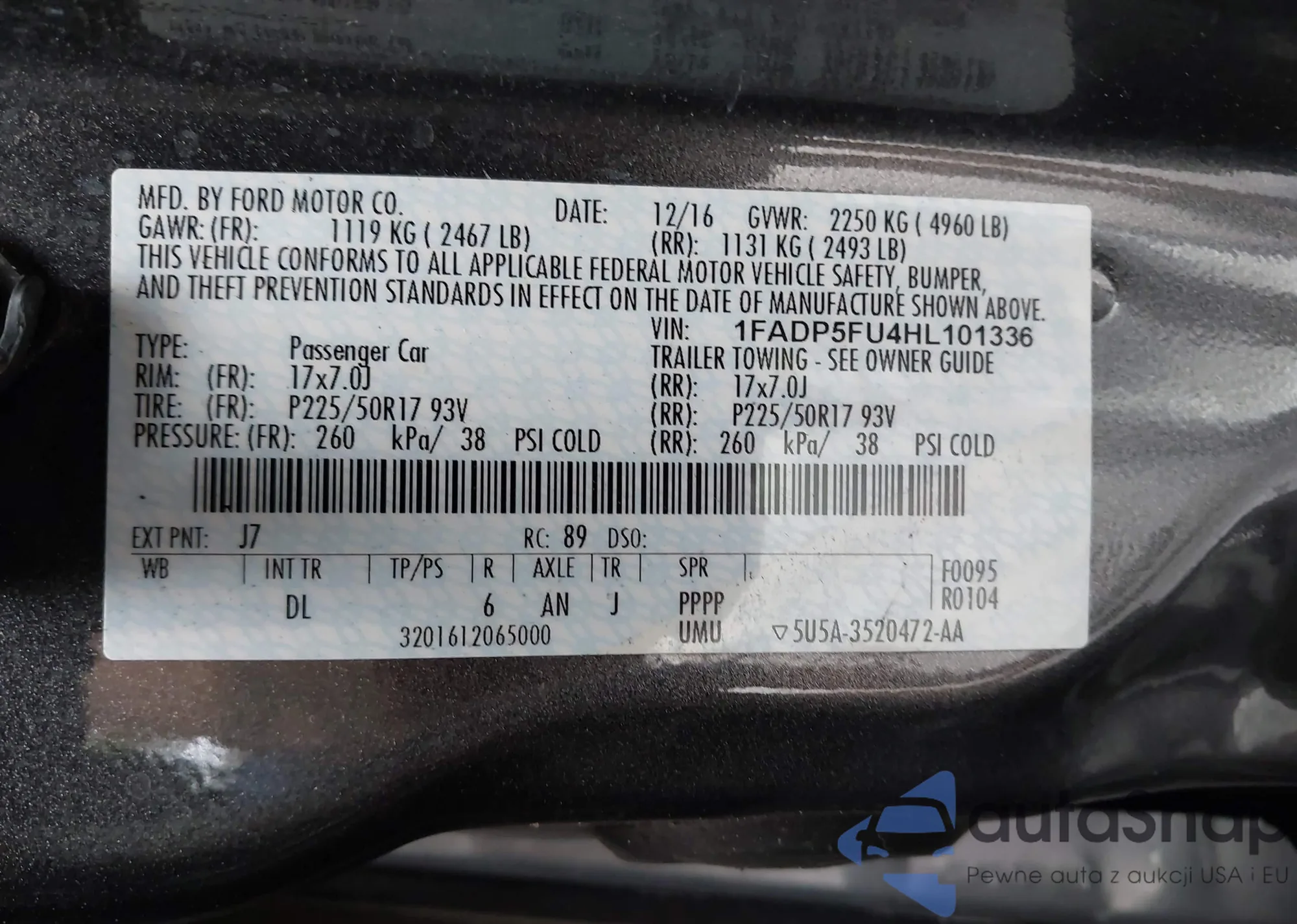 VIN: 1FADP5FU4HL101336