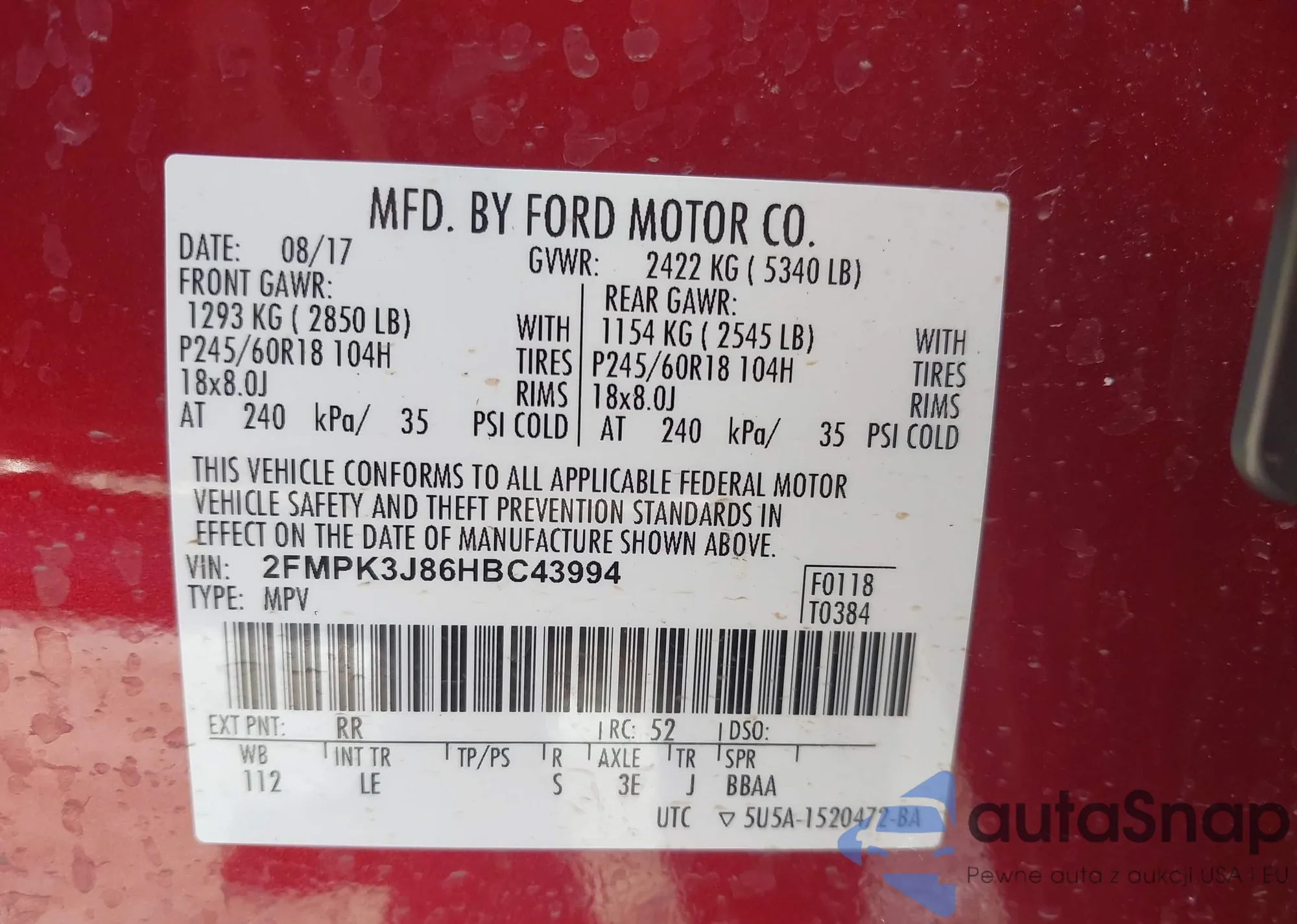 VIN: 2FMPK3J86HBC43994
