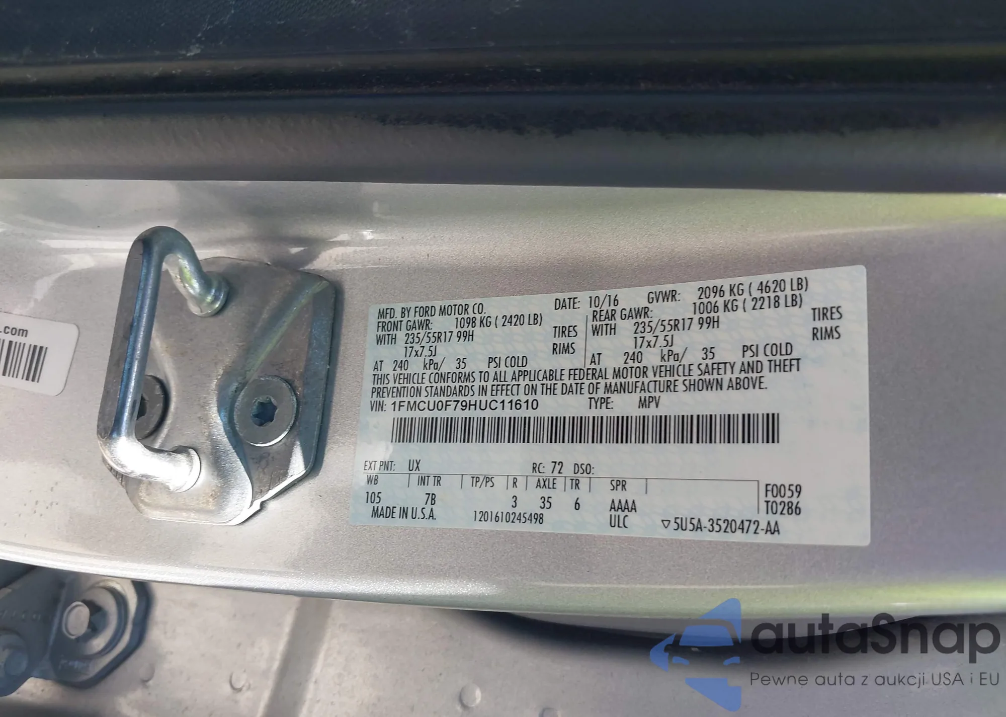 VIN: 1FMCU0F79HUC11610