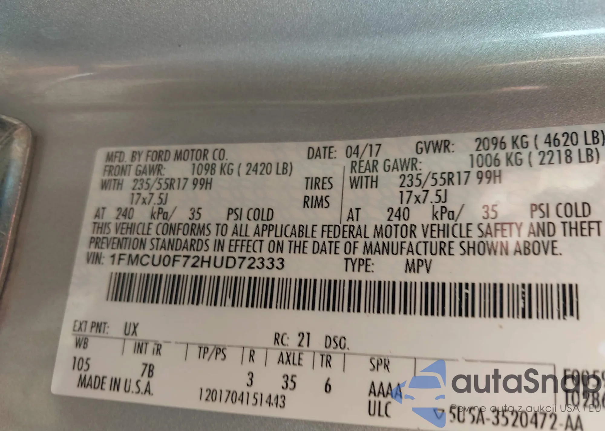 VIN: 1FMCU0F72HUD72333