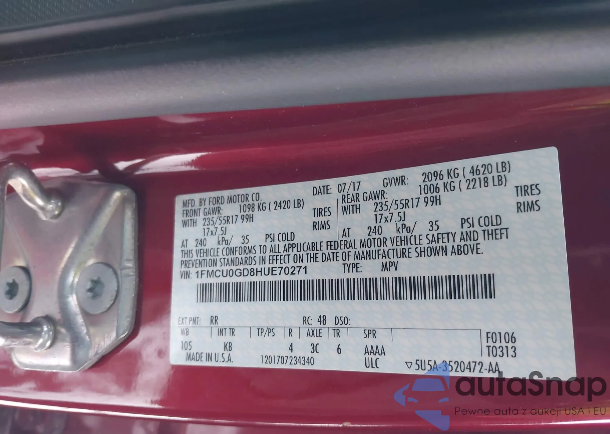 VIN: 1FMCU0GD8HUE70271