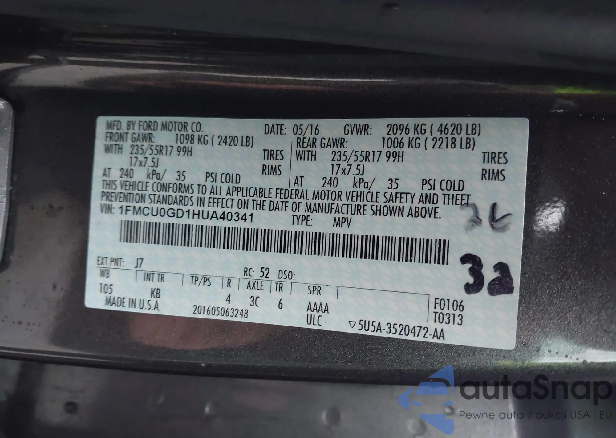 VIN: 1FMCU0GD1HUA40341