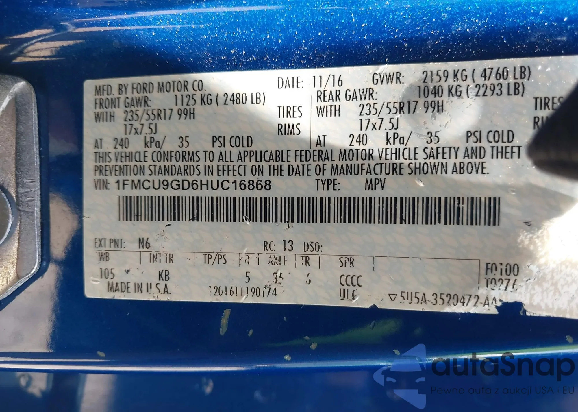 VIN: 1FMCU9GD6HUC16868