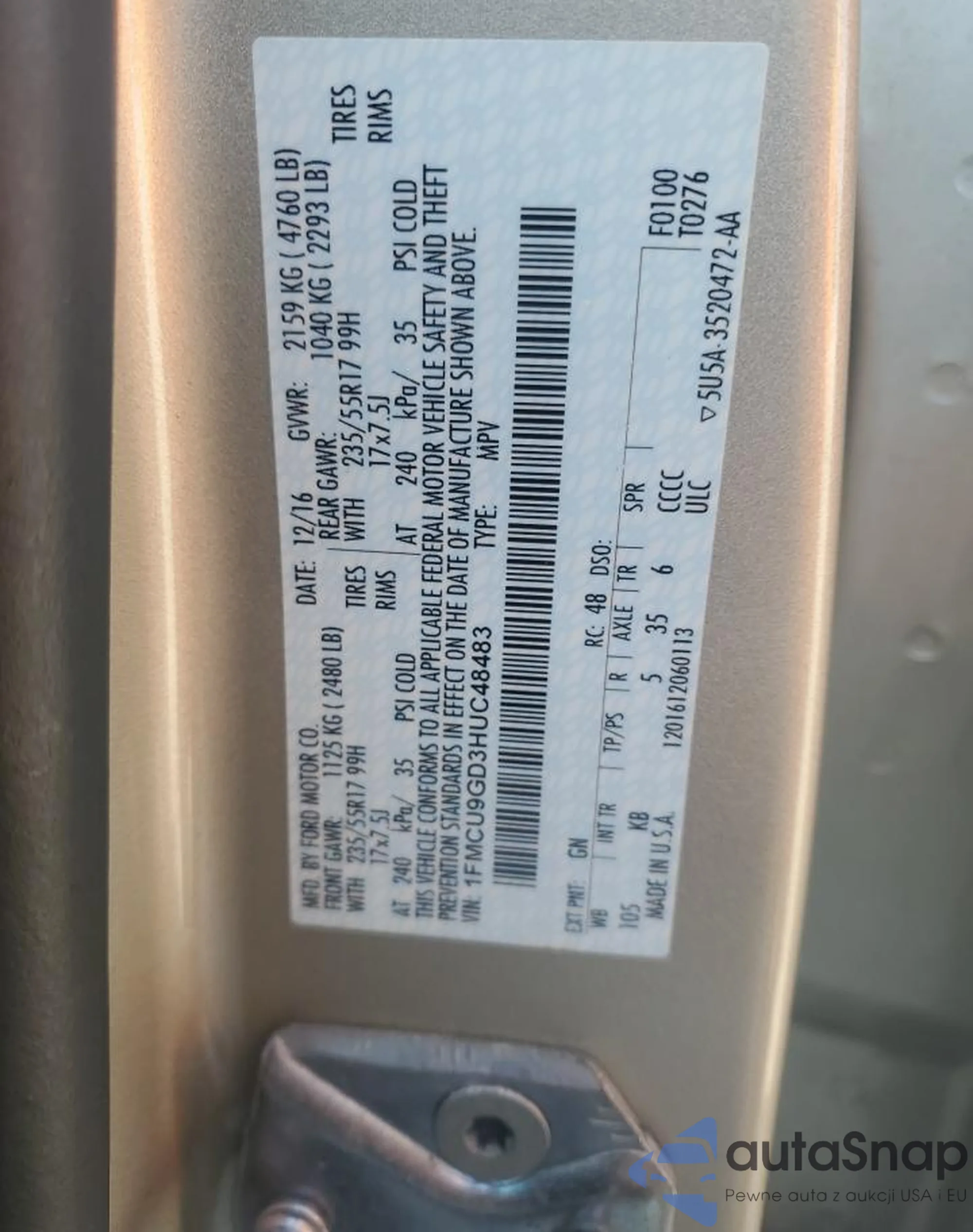VIN: 1FMCU9GD3HUC48483