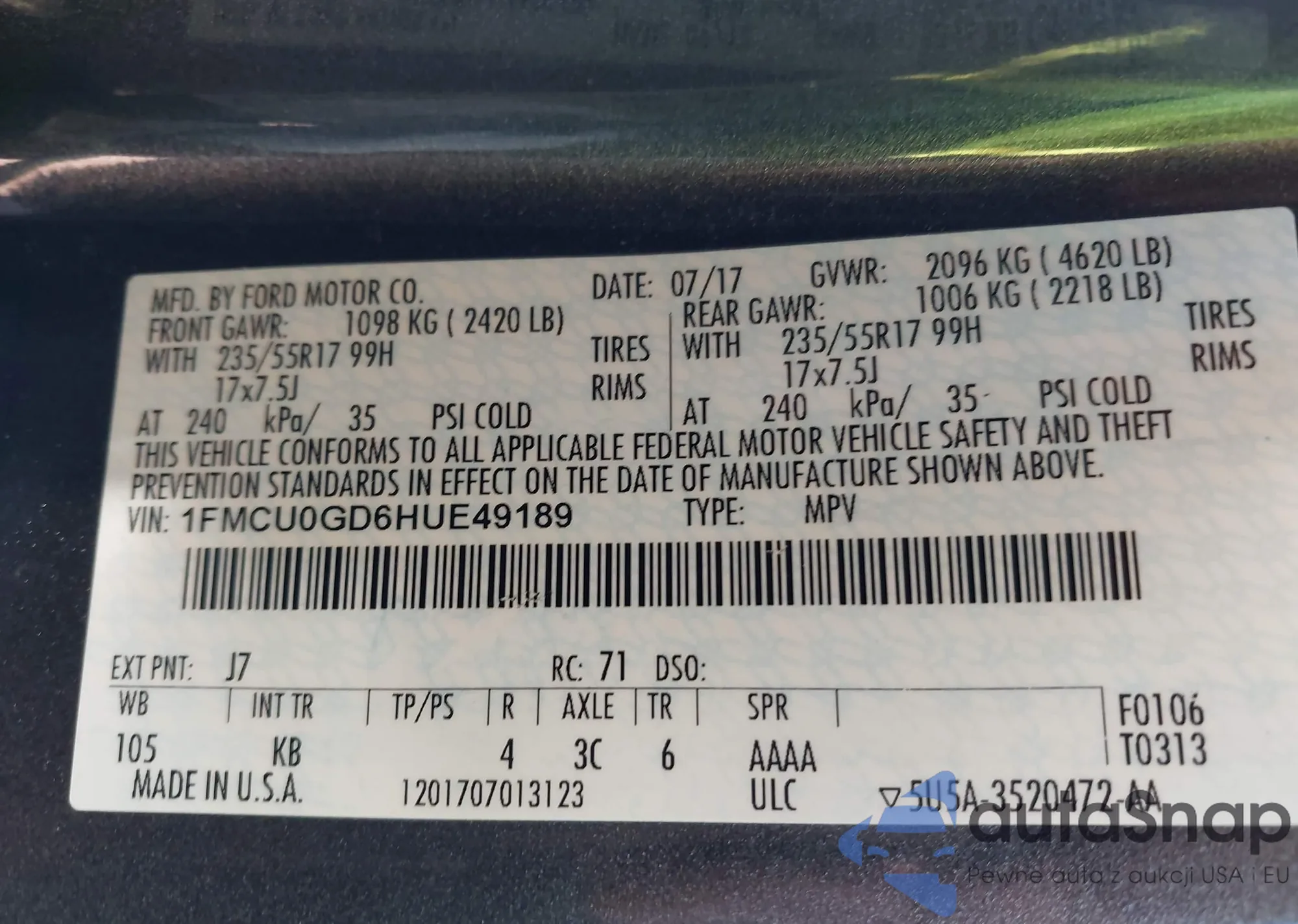 VIN: 1FMCU0GD6HUE49189