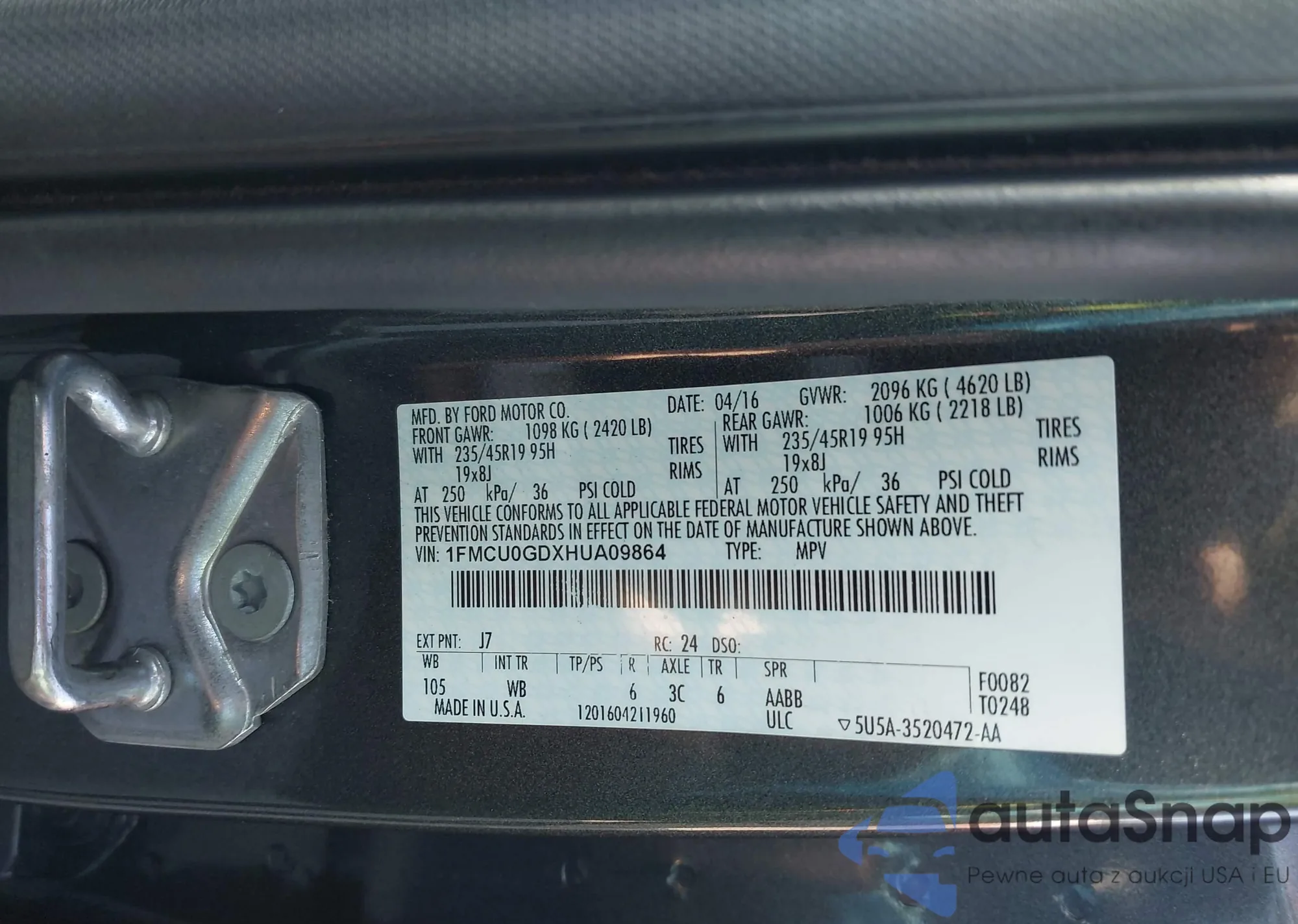 VIN: 1FMCU0GDXHUA09864