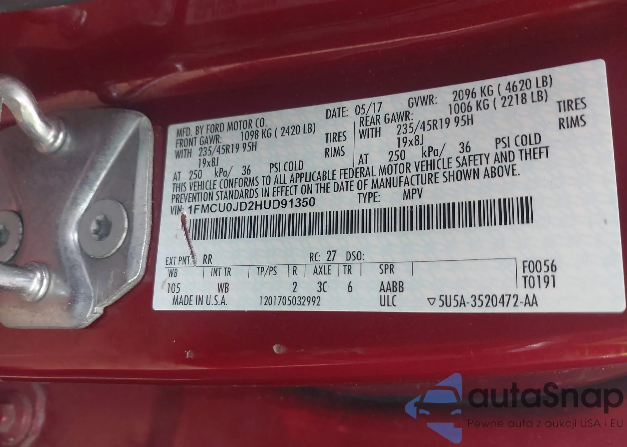 VIN: 1FMCU0JD2HUD91350