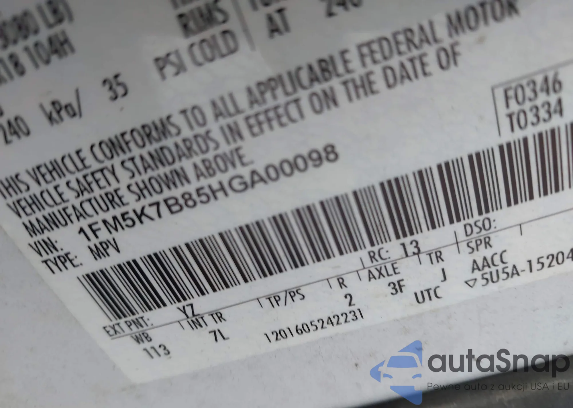 VIN: 1FM5K7B85HGA00098