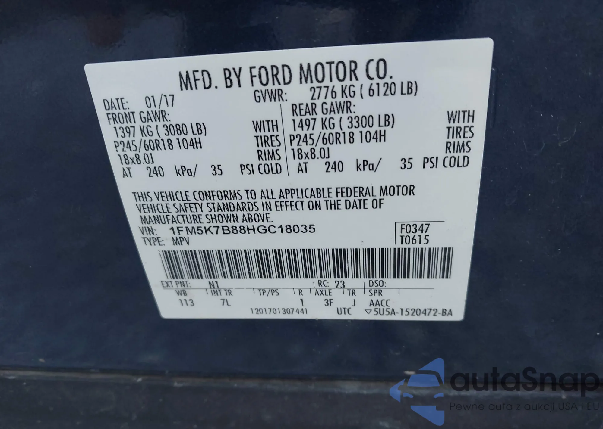 VIN: 1FM5K7B88HGC18035
