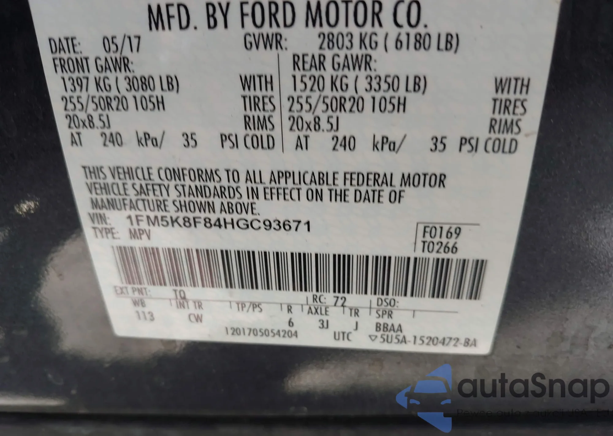 VIN: 1FM5K8F84HGC93671