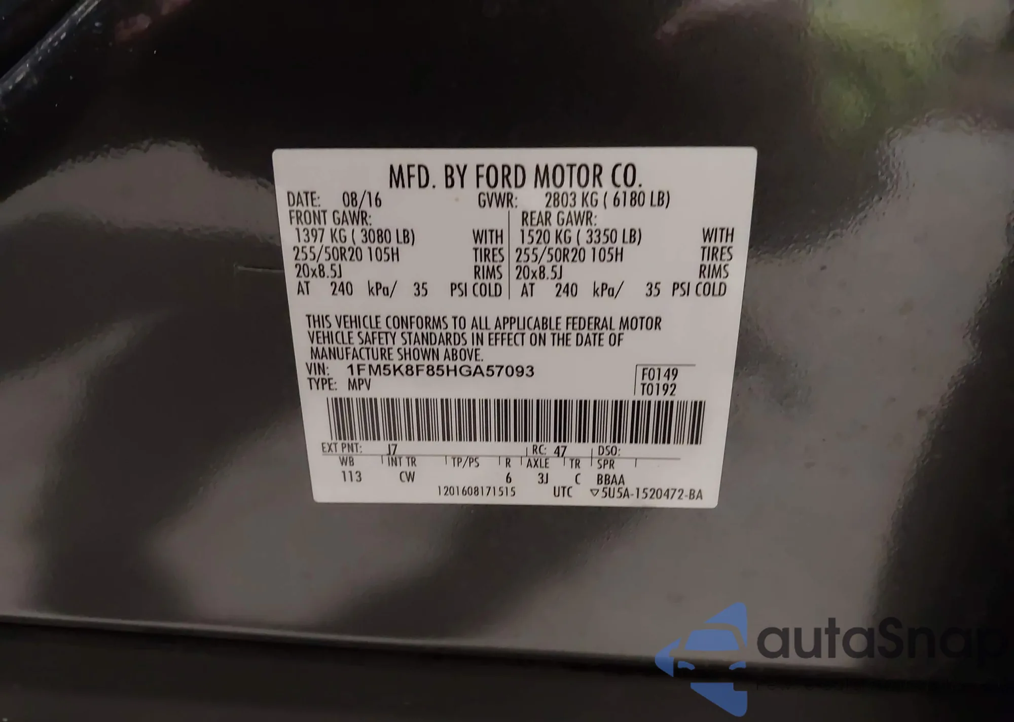 VIN: 1FM5K8F85HGA57093