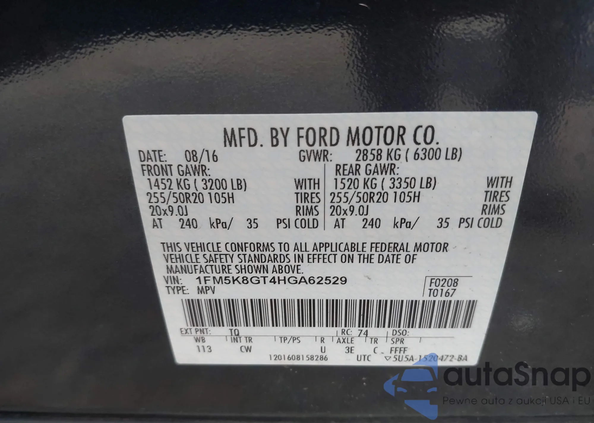 VIN: 1FM5K8GT4HGA62529