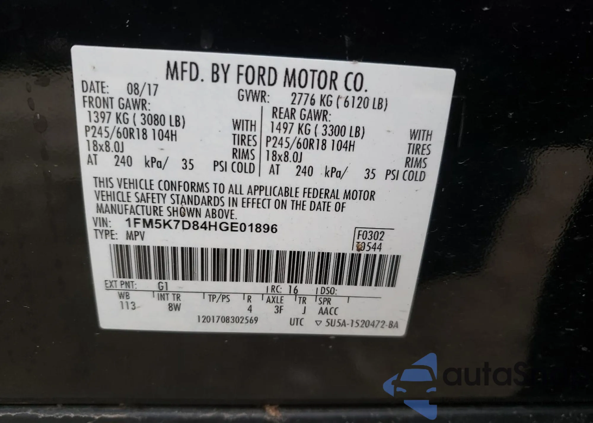 • VIN: 1FM5K7D84HGE01896