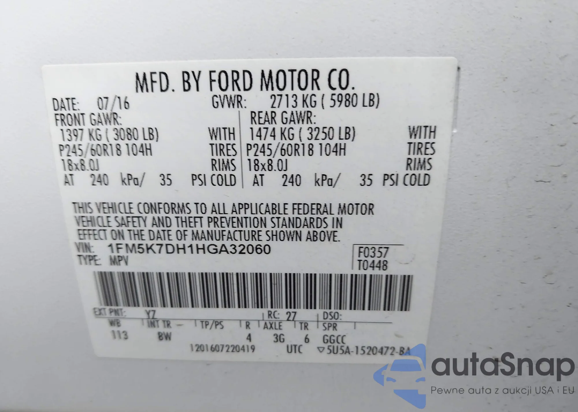VIN: 1FM5K7DH1HGA32060