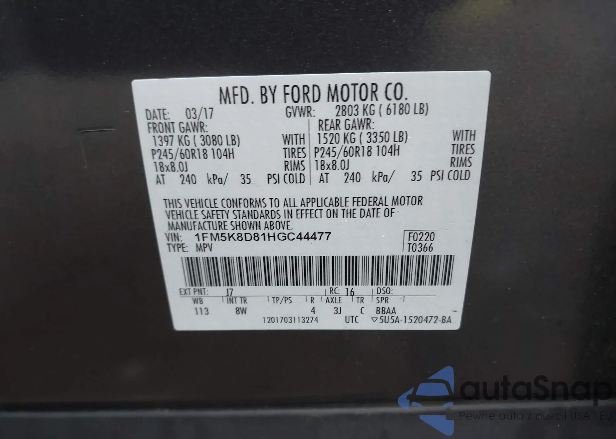 VIN: 1FM5K8D81HGC44477