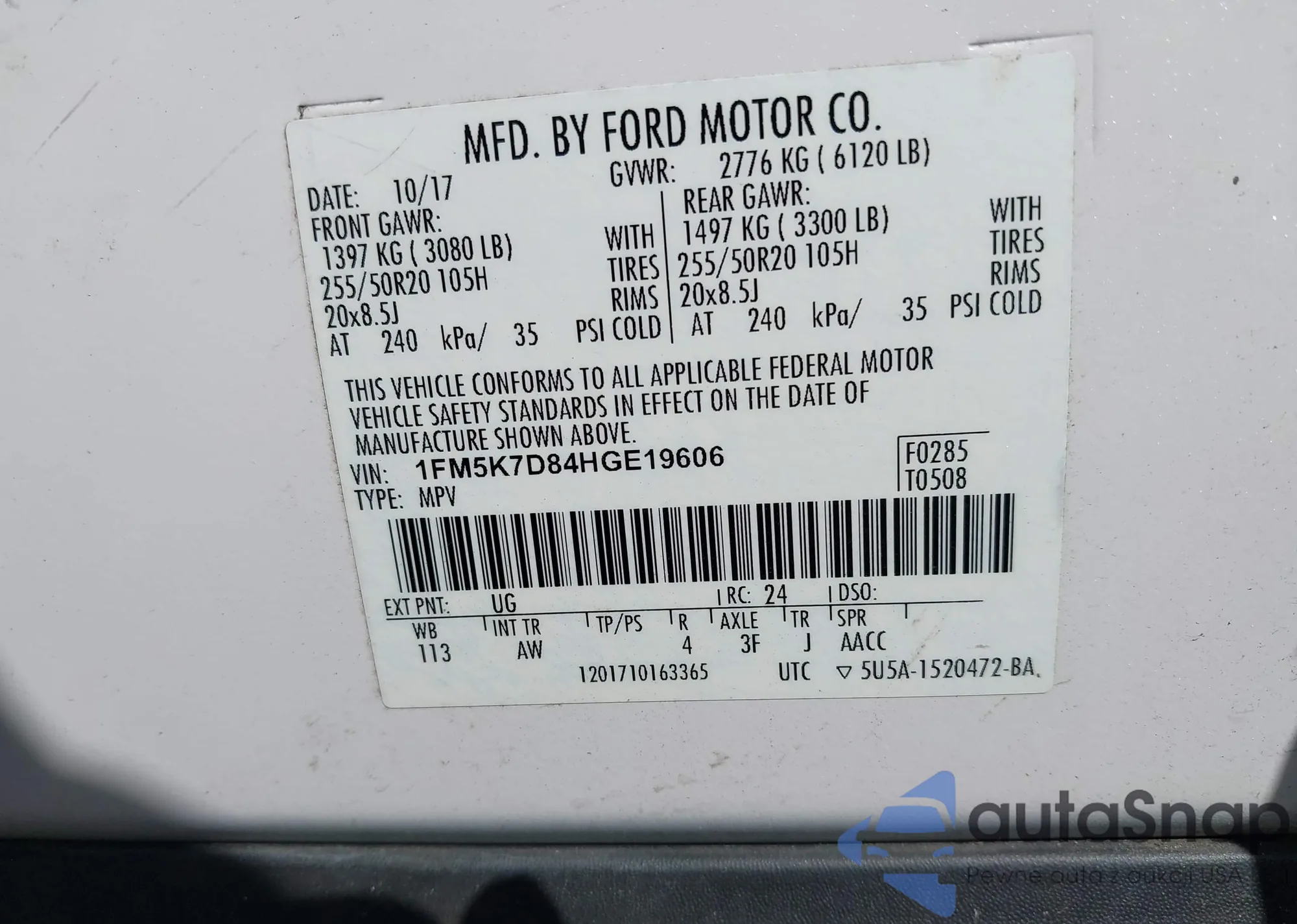 VIN: 1FM5K7D84HGE19606