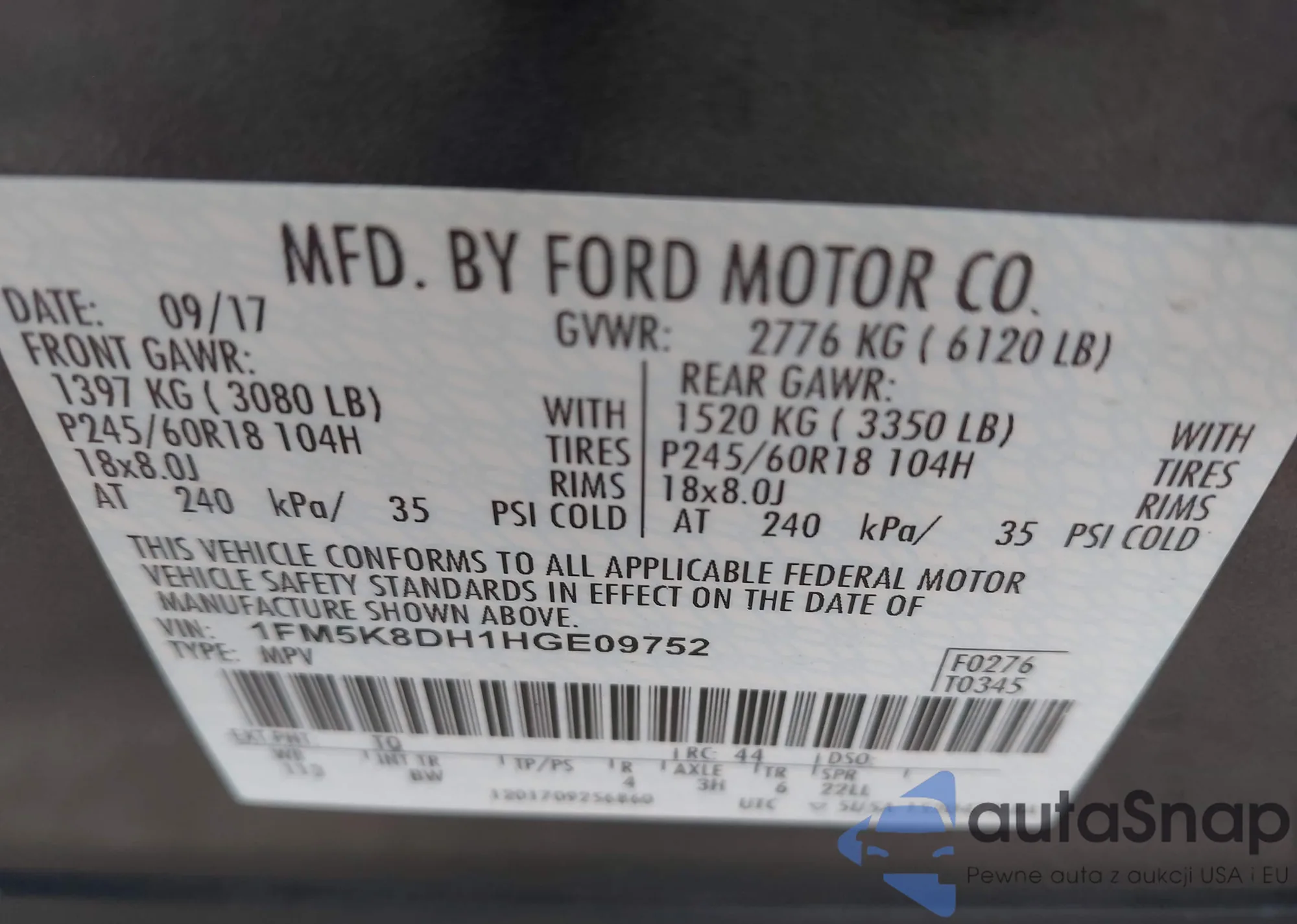 VIN: 1FM5K8DH1HGE09752
