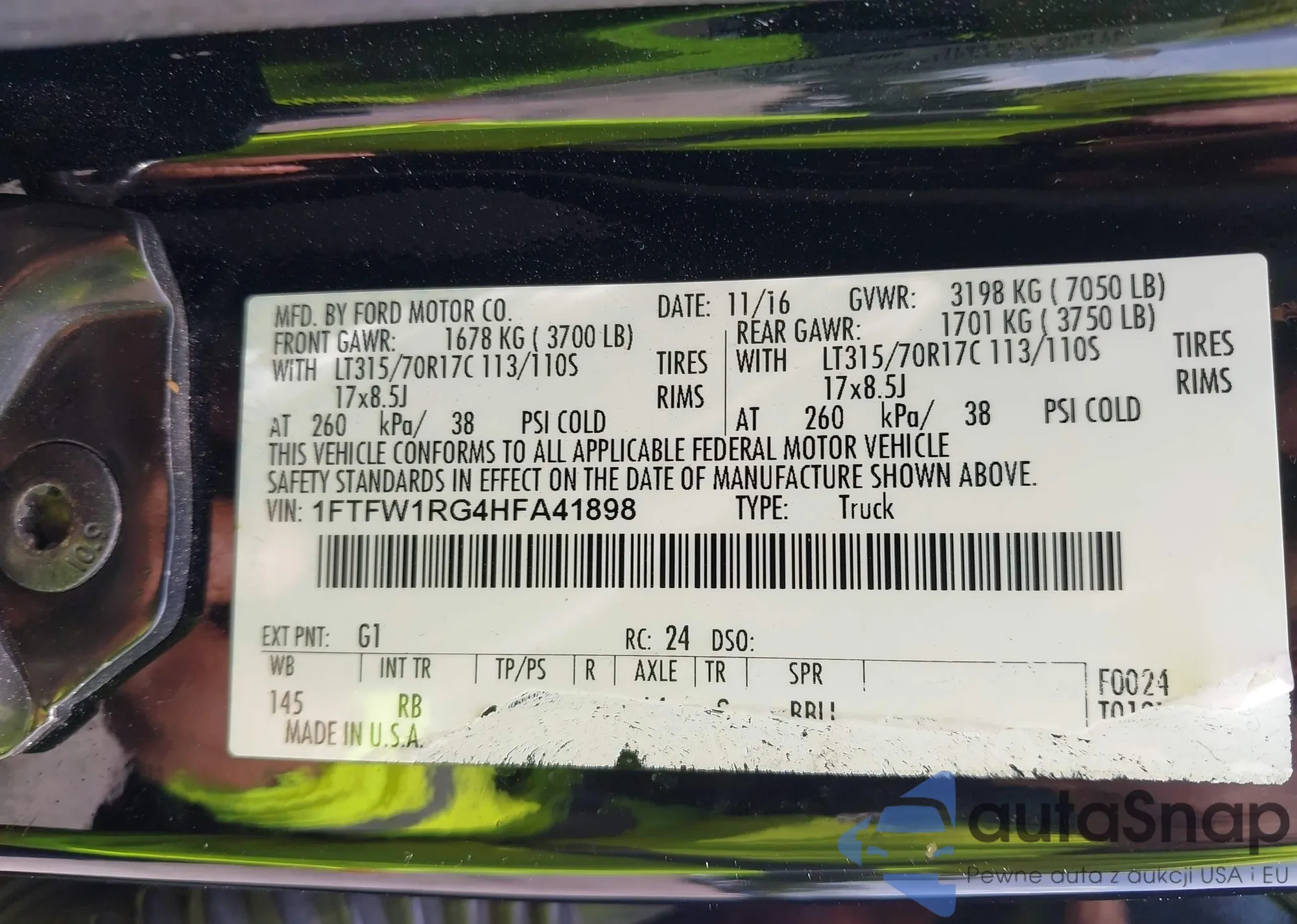 • VIN: 1FTFW1RG4HFA41898