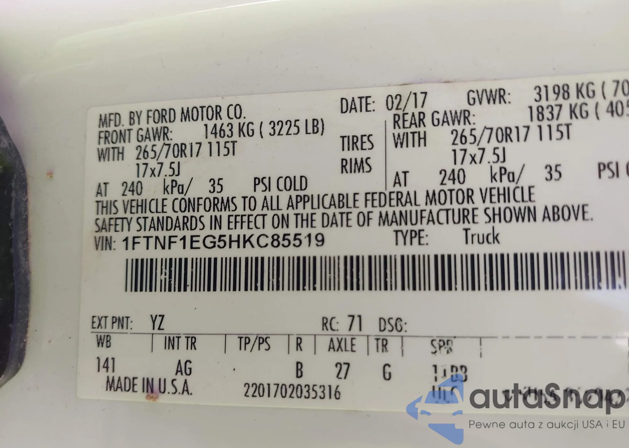 VIN: 1FTNF1EG5HKC85519