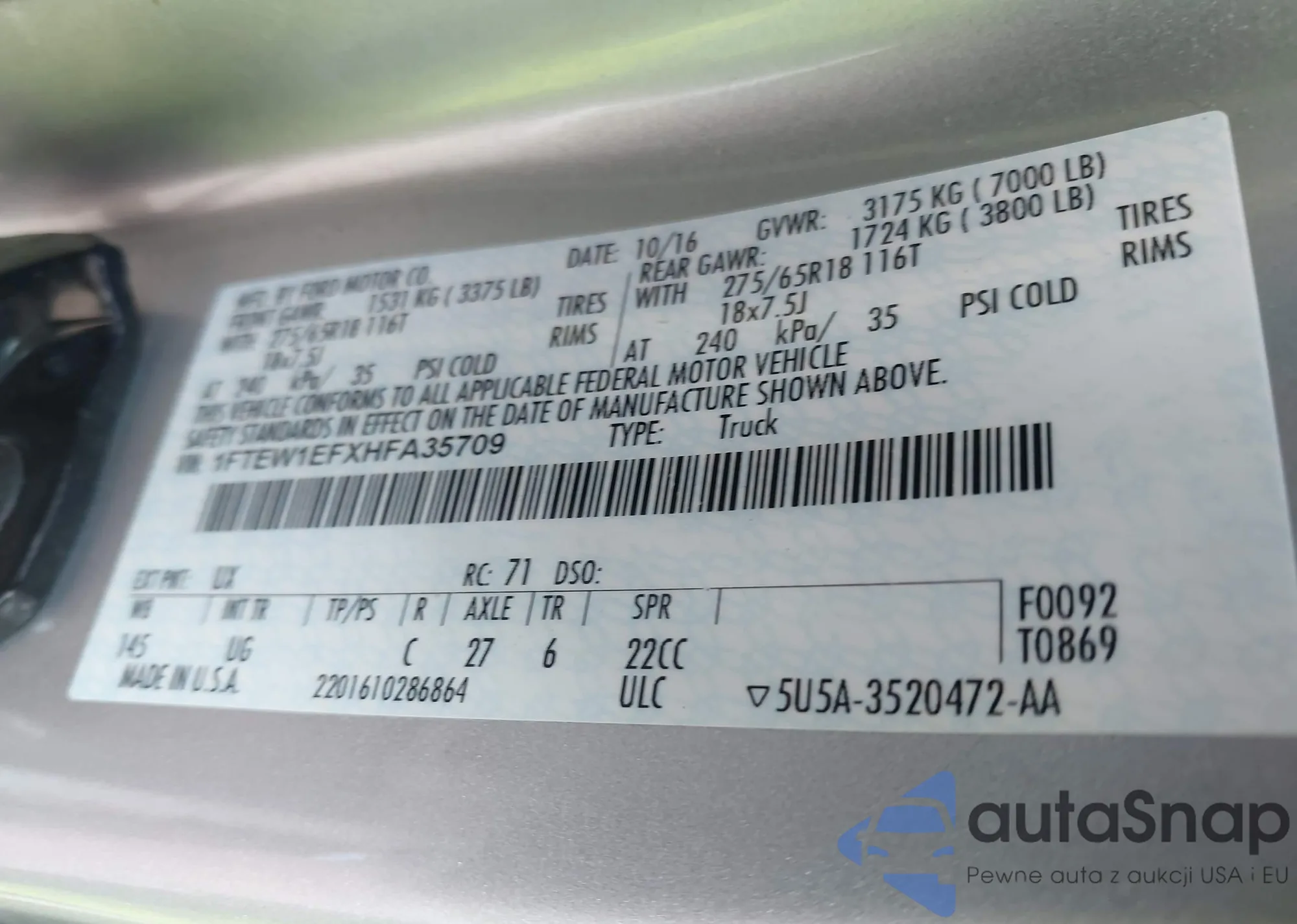 VIN: 1FTEW1EFXHFA35709
