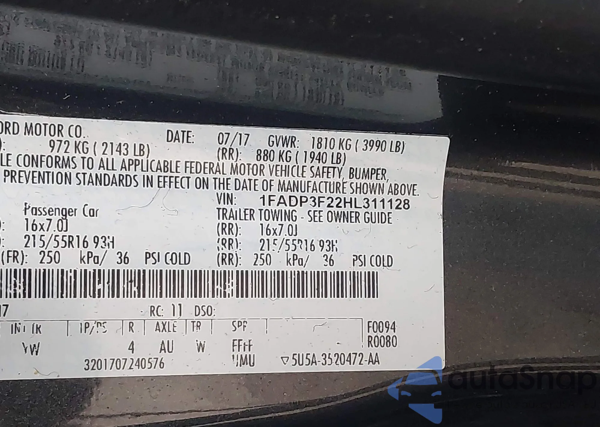 VIN: 1FADP3F22HL311128