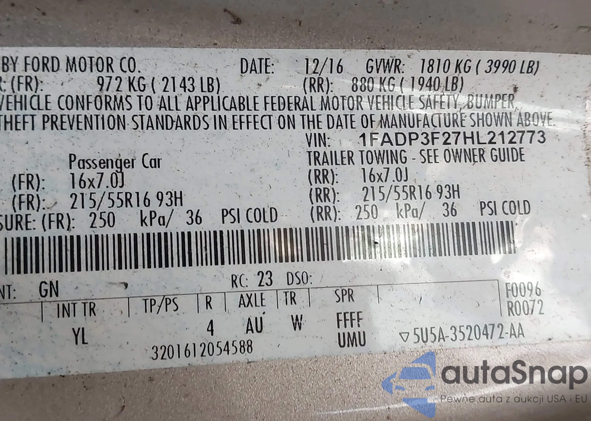 VIN: 1FADP3F27HL212773