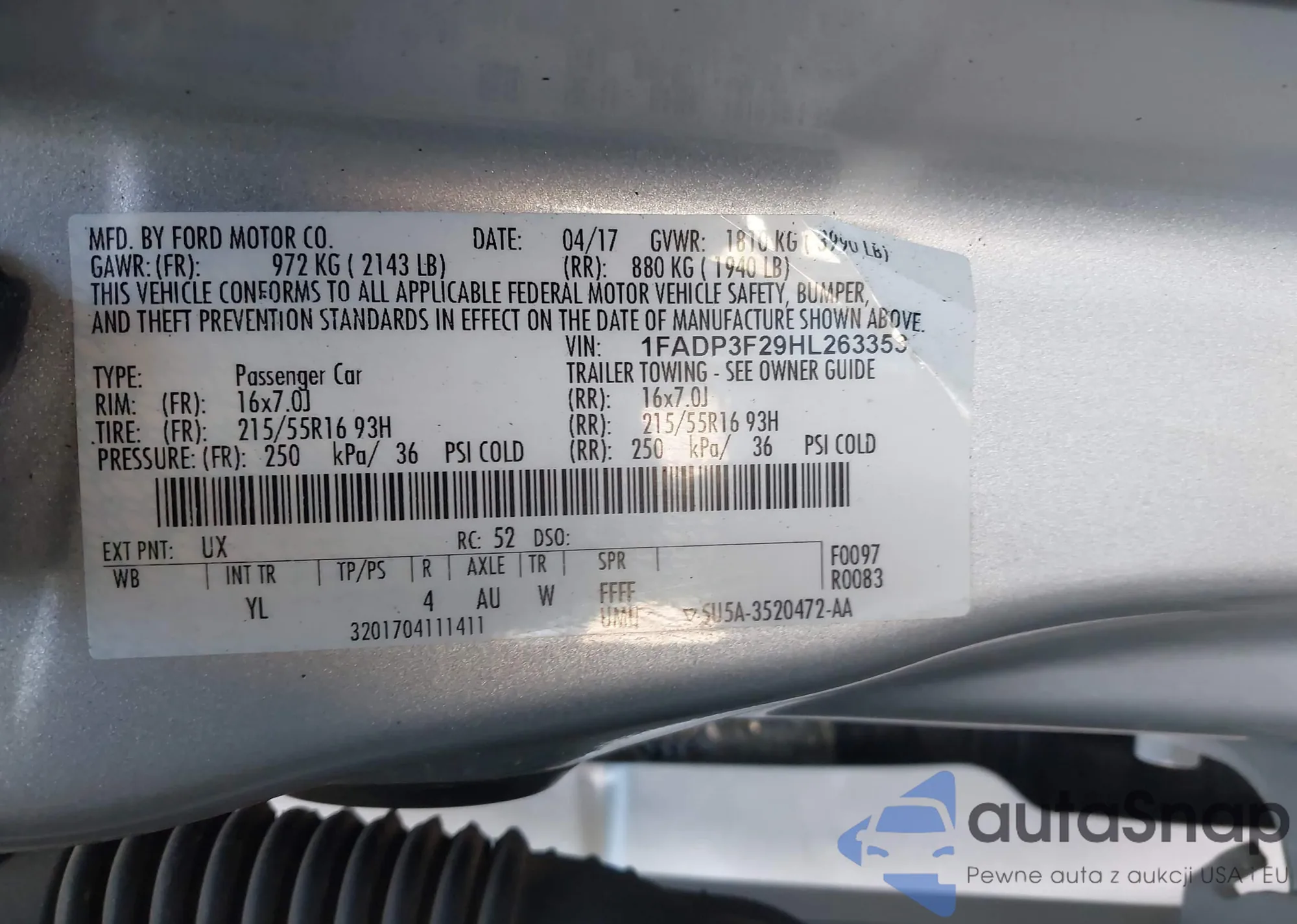 VIN: 1FADP3F29HL263353
