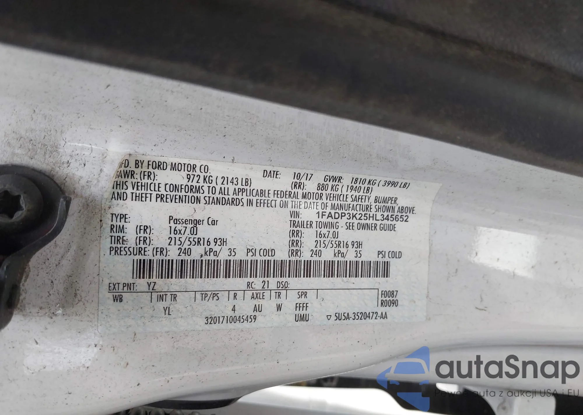 VIN: 1FADP3K25HL345652