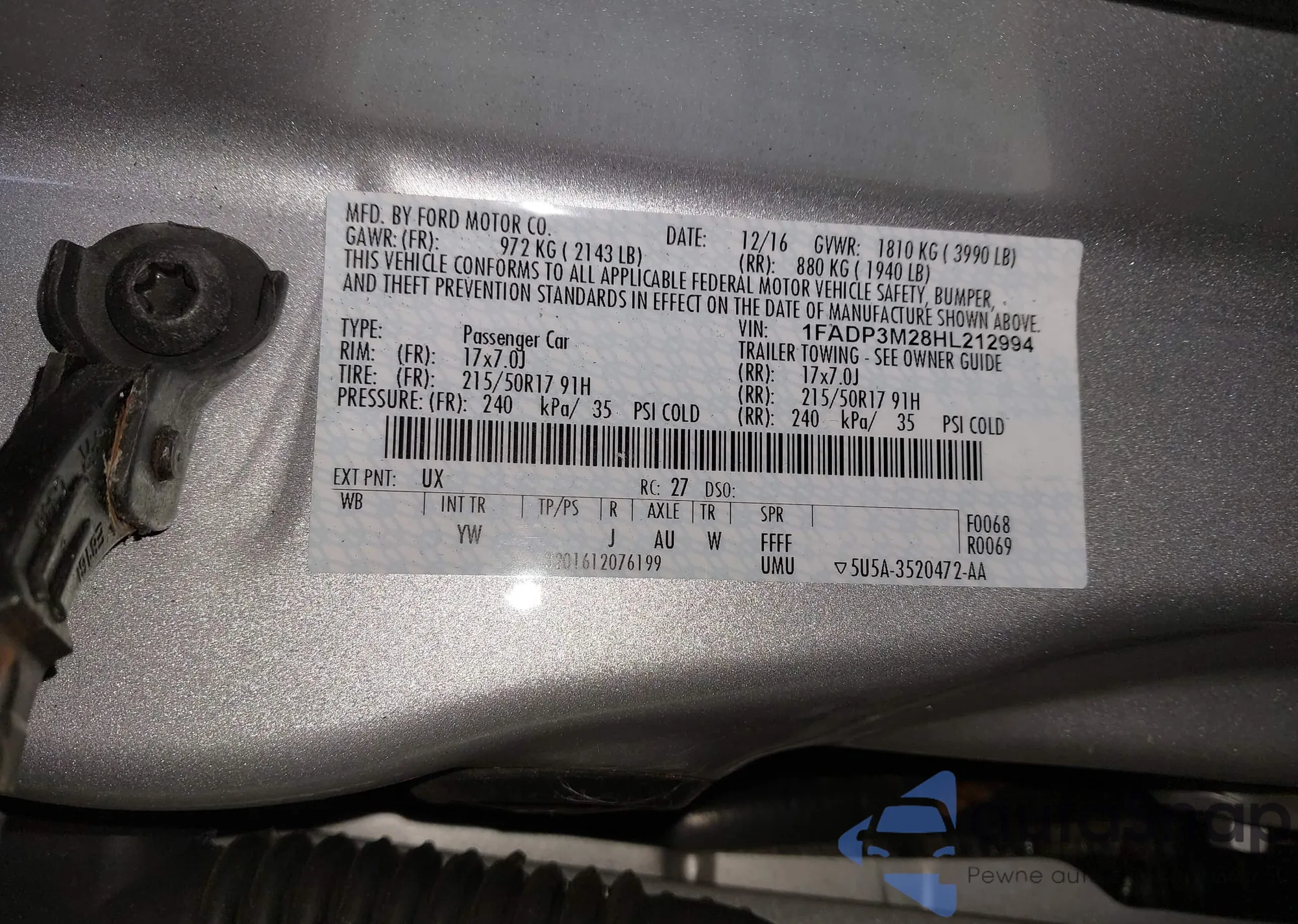 VIN: 1FADP3M28HL212994