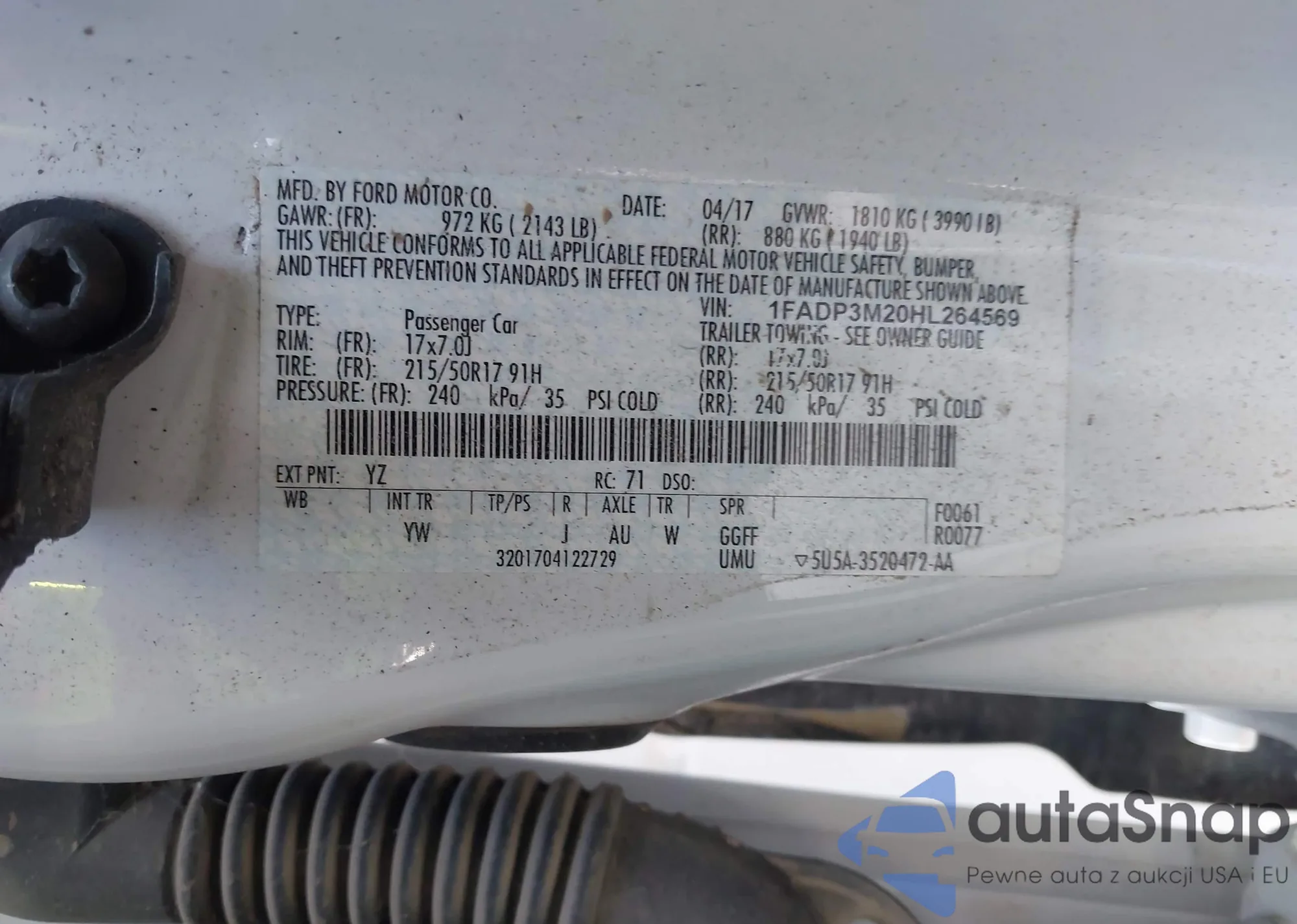 The car Ford Focus 2017 (VIN 1FADP3M20HL264569) has not been auctioned before. The documents are clean, and the mileage matches or is below the market average. Sold by an insurance company – we recommend purchase. Delivery to the port will take approx. 6–8 weeks.