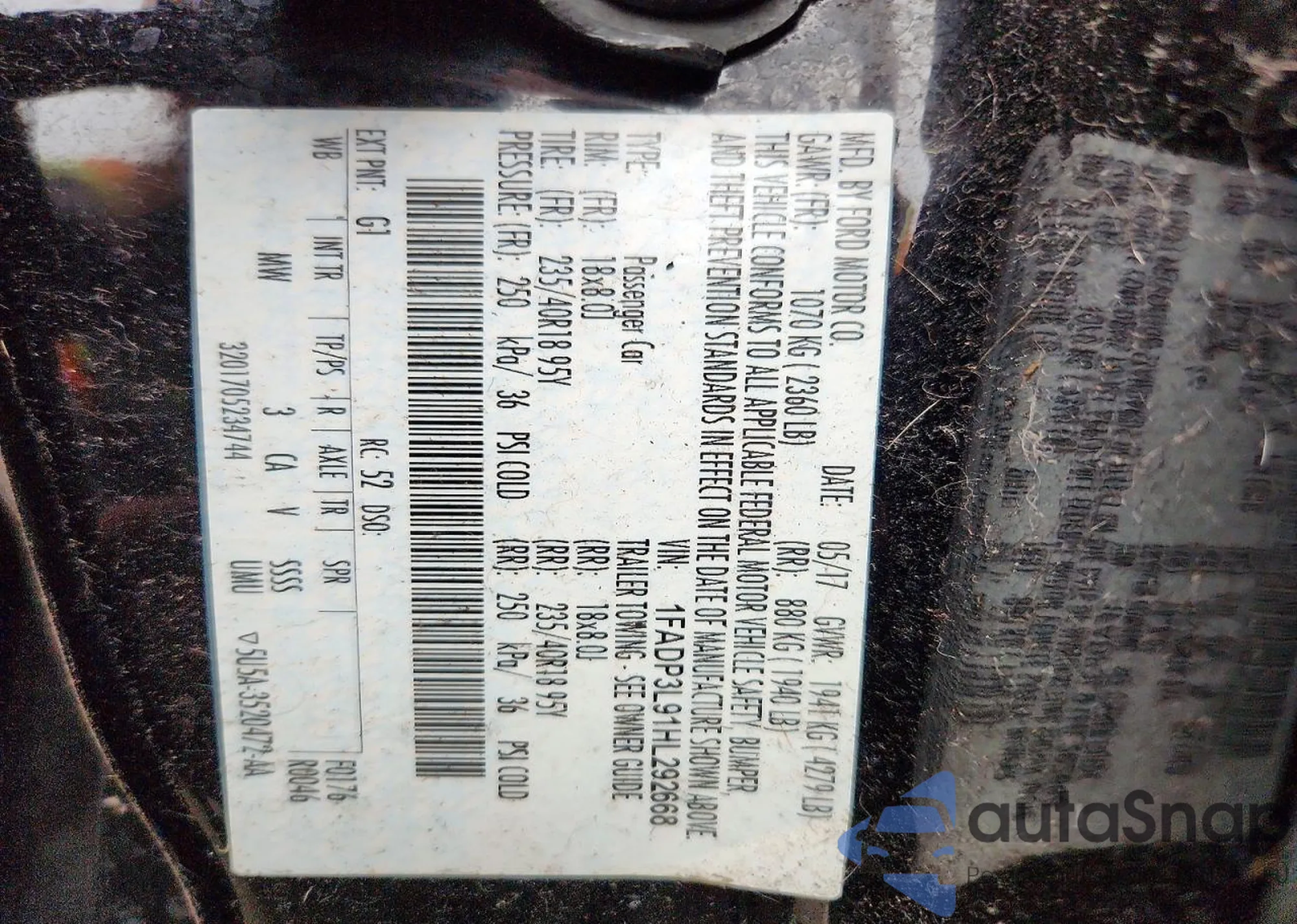 VIN: 1FADP3L91HL292668