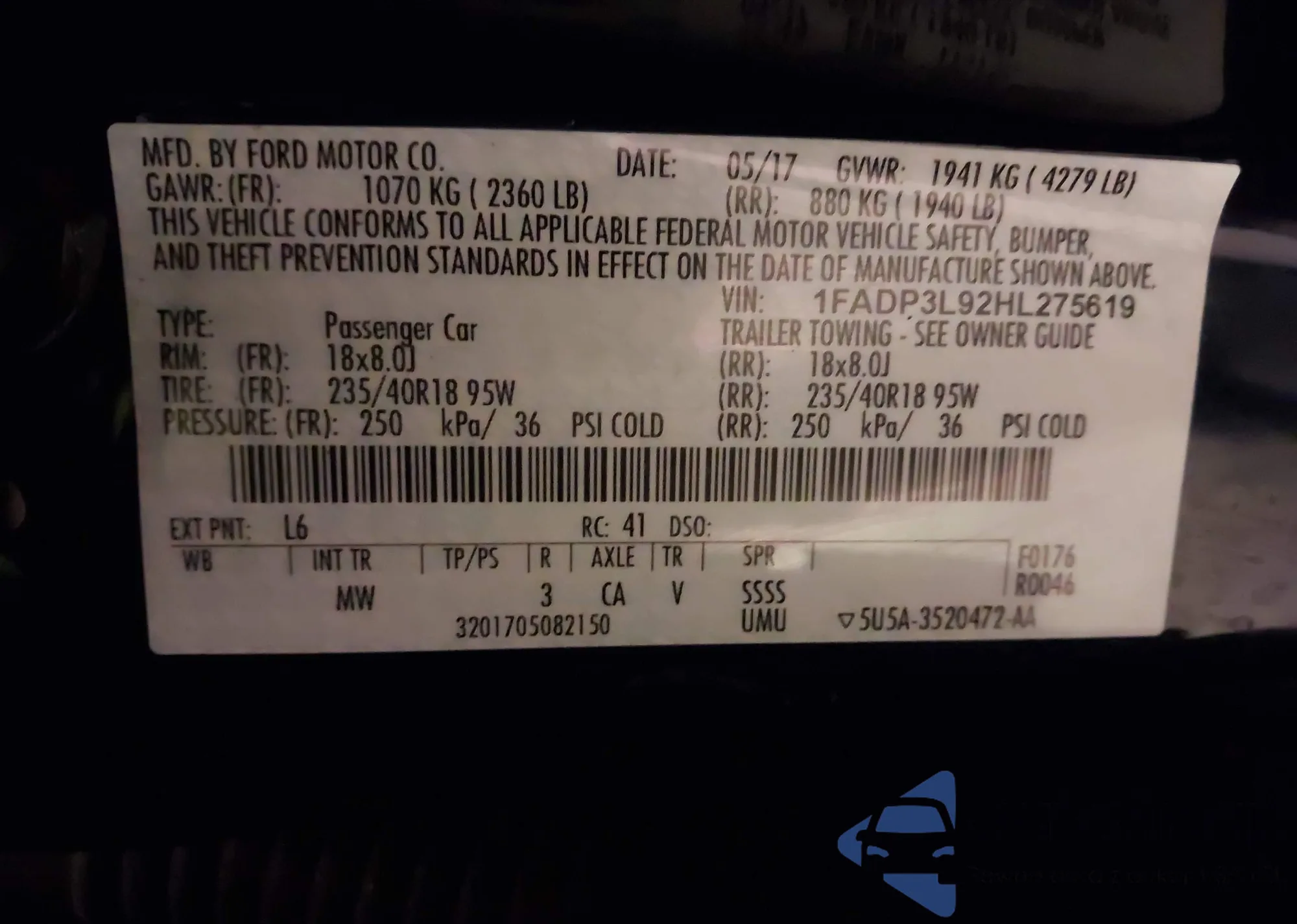 The car Ford Focus ST 2017 (VIN 1FADP3L92HL275619) has not been auctioned before. The documents are clean, and the mileage matches or is below the market average. Sold by an insurance company – we recommend purchase. Delivery to the port will take approx. 6–8 weeks.