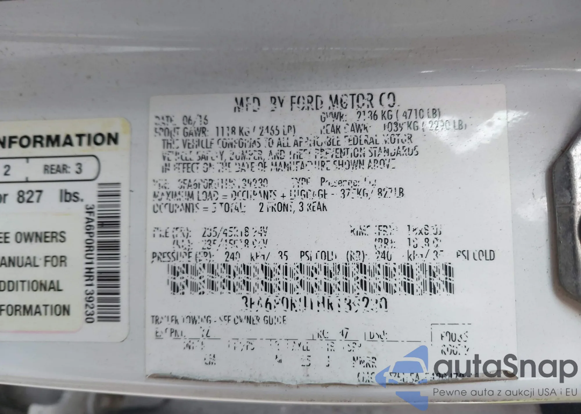 • VIN: 3FA6P0RU1HR139230