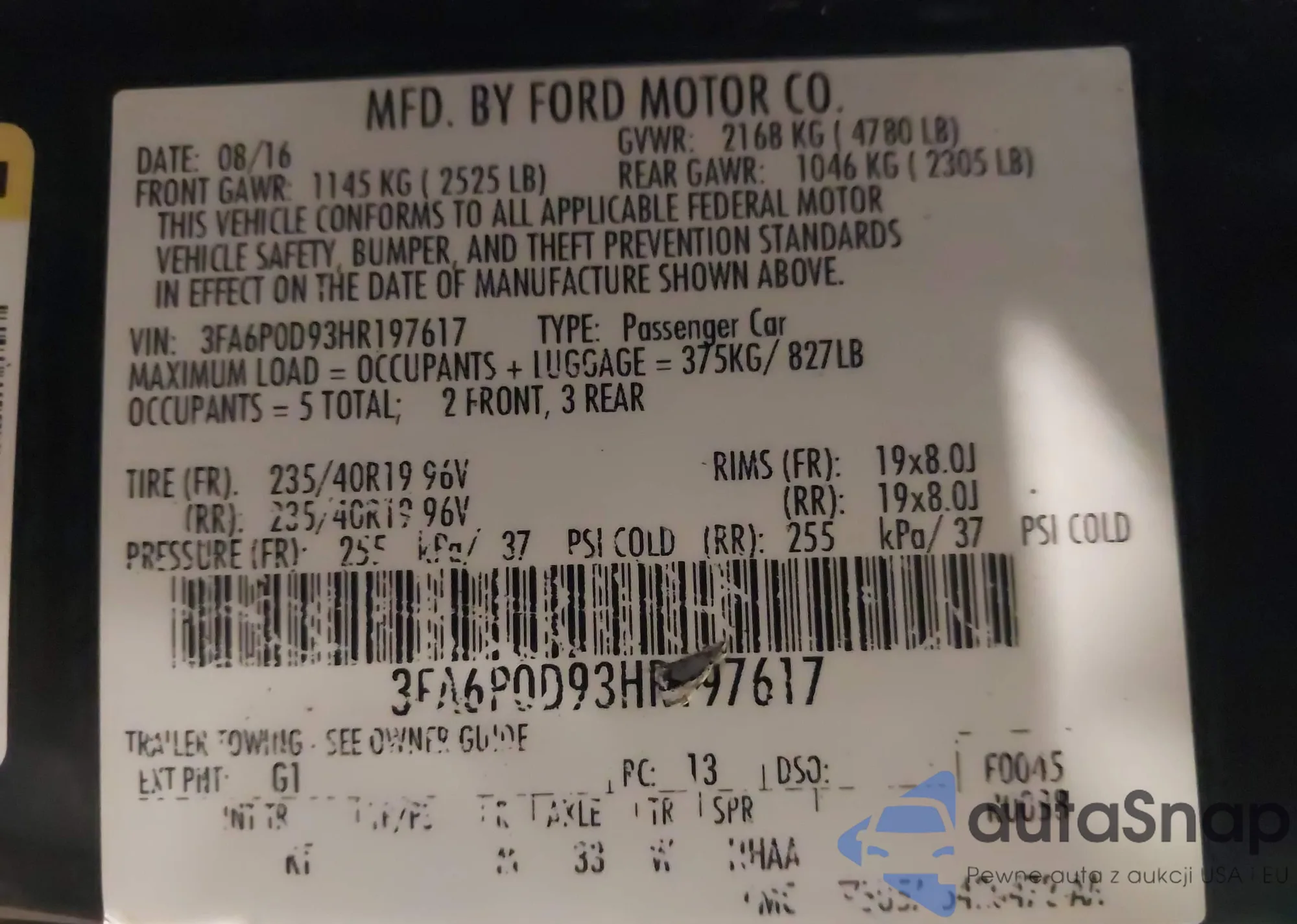 VIN: 3FA6P0D93HR197617