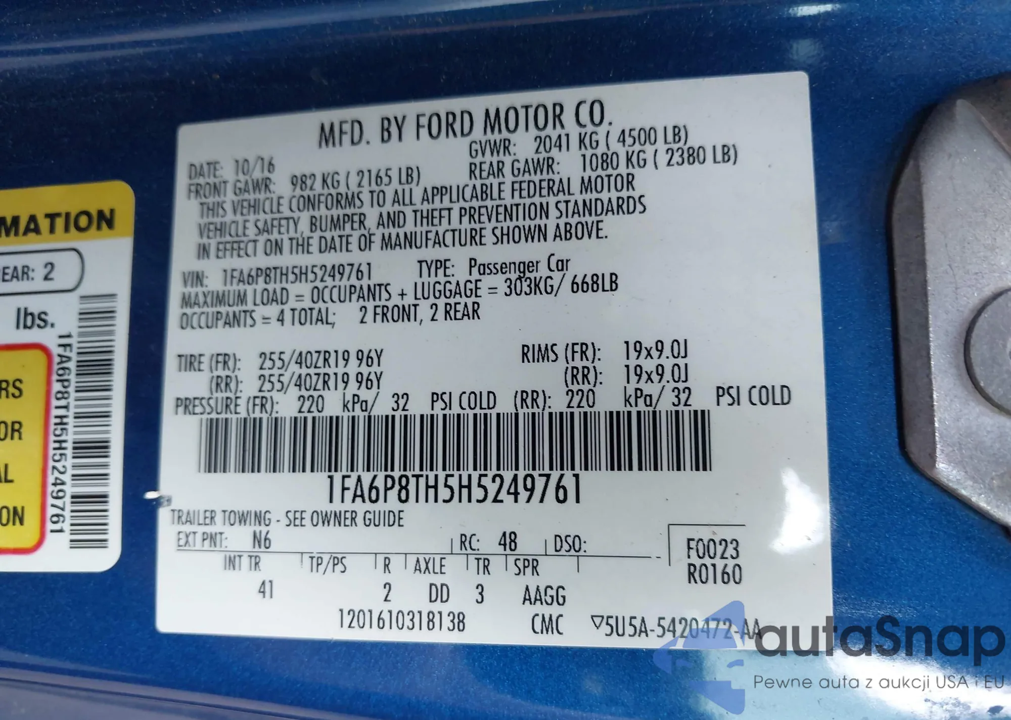 VIN: 1FA6P8TH5H5249761