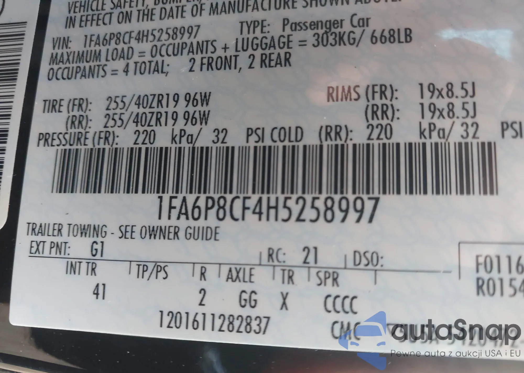 The car Ford Mustang 2017 (VIN 1FA6P8CF4H5258997) has not been auctioned before. The documents are clean, and the mileage matches or is below the market average. Sold by an insurance company – we recommend purchase. Delivery to the port will take approx. 6–8 weeks.