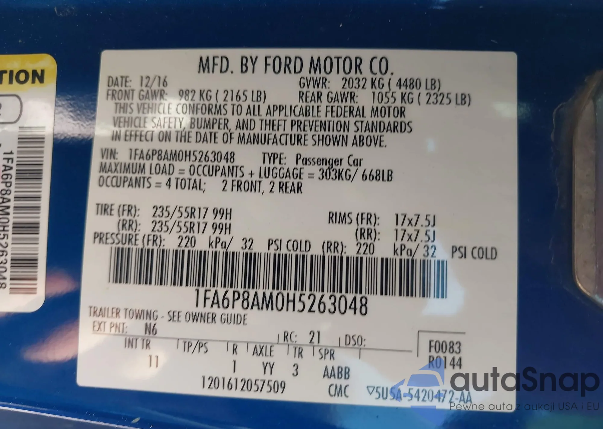 VIN: 1FA6P8AM0H5263048
