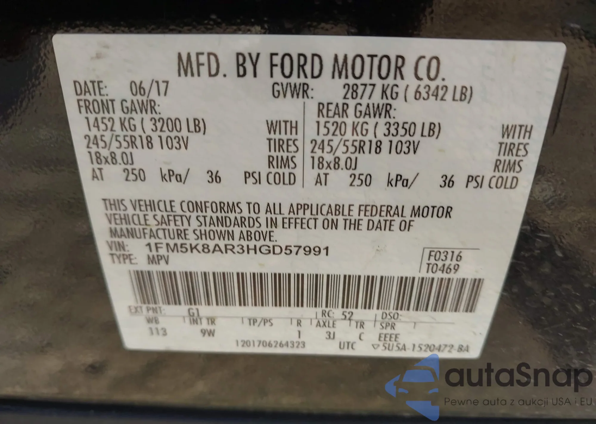 VIN: 1FM5K8AR3HGD57991