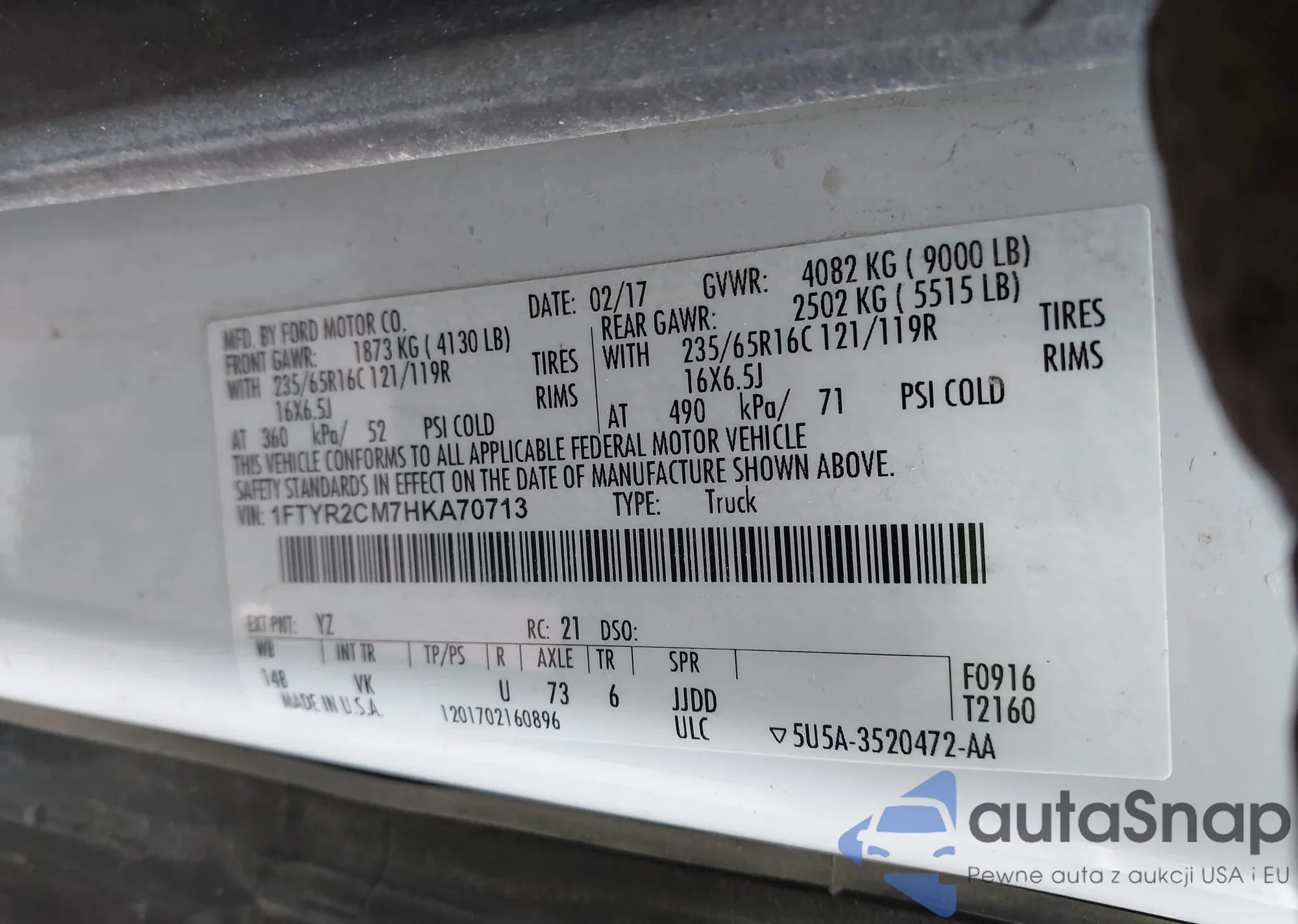 VIN: 1FTYR2CM7HKA70713