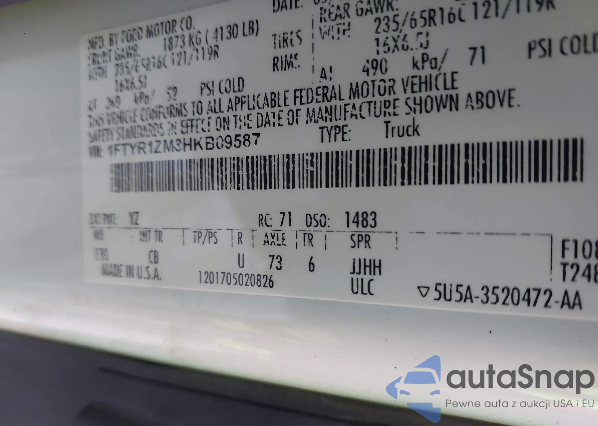 VIN: 1FTYR1ZM3HKB09587